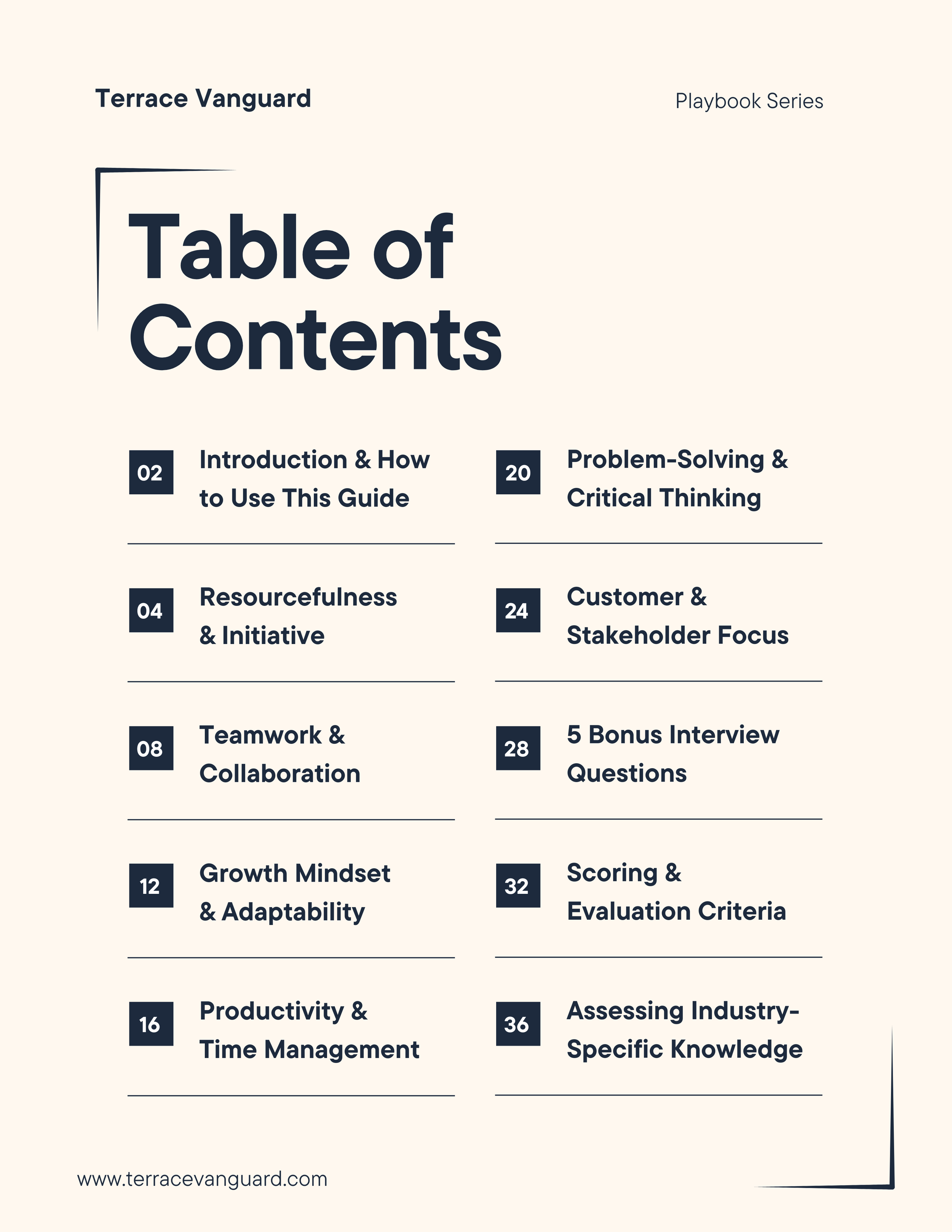 STORE Categories: Select a Category Bundles Bundles Quick View The Executive Interview Playbook $149.00 Purchase Added! Quick View The Professional Interview Playbook for Small Businesses $99.00 Purchase Added! Quick View The Small Business Hiring Playbook $129.00 Purchase Added! Quick View Reference Check Playbook $99.00 Purchase Added! Quick View The Small Business Retention Playbook: Essentials $99.00 Purchase Added! Quick View Small Business Performance Management Guide $99.00 Purchase Added! Quick View Universal Employee Onboarding Checklist $39.00 Purchase Added! Quick View The Complete Candidate Interview Success Guide $29.00 Purchase Added! Quick View Performance & Retention Bundle Sale Price: $149.00 Original Price: $198.00 Sale Purchase Added! Quick View The Hiring Bundle Sale Price: $349.00 Original Price: $525.00 Sale Purchase Added! Quick View Terrace Vanguard Complete Playbook System Bundle Sale Price: $449.00 Original Price: $723.00 Sale Purchase Added!